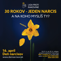 Na Slovensku ročne pribúda približne 40 000 onkologických pacientov a každý z nás pozná niekoho, kto je ovplyvnený týmto ochorením. Už 30 rokov symbolizuje žltý narcis v uliciach tisíce príbehov onkologických pacientov. Liga proti rakovine ďakuje všetkým, ktorí ich 16. apríla ... celý článok »